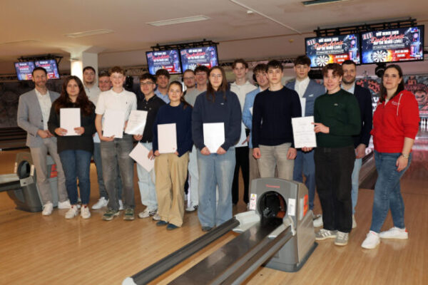 Kreissparkasse Euskirchen lud Siegerteams des „Planspiel Börse“ zur kleinen Feier mit Preisübergabe in die „Bowl Fabrik“ ein – „Hin und her macht Taschen leer!“ Mechernich – Im Vergleich zum Vorjahr sind bei den Schülerwettbewerben des Planspiels Börse noch einmal Mehr lesen