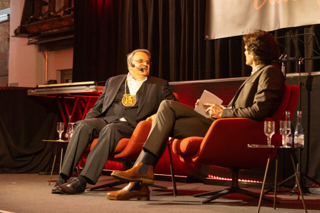 In lockeren Interviews glänzte Udo Becker (v.l.) mit seiner Schlagfertigkeit, so dass Moderator Sebastian Tittelbach schon scherzhaft um seinen Job fürchtete. Bild: Tameer Gunnar Eden/Eifeler Presse Agentur/epa