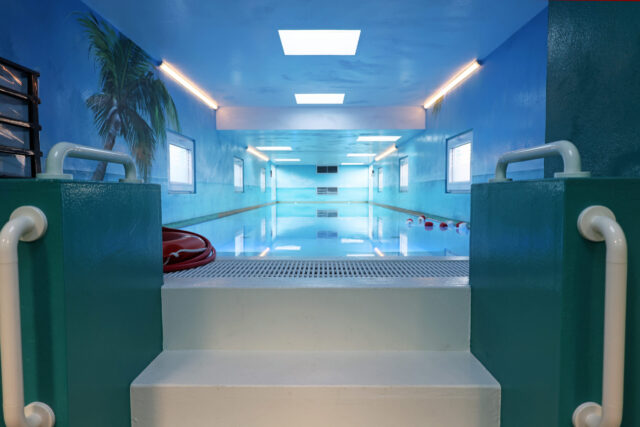 Auf dem Schulhof werden ab sofort kostenfreie Schwimmkurse für Kinder mit geschulten Übungsleiterinnen und -leitern angeboten. Die Schwimmoffensive NRW, eine von der Landesregierung Nordrhein-Westfalen im Jahr 2023 ins Leben gerufene Initiative, die dem zunehmenden Mangel an Schwimmkursangeboten entgegenwirken möchte, will mit dem mobilen Schwimmcontainer auch Zeichen für mehr Schwimmsicherheit und Chancengleichheit im ganzen Land setzen. Dass Narwali trotz langer Wartelisten nun für mehrere Wochen in Kall und damit zum zweiten Mal im Kreis Euskirchen Station macht, ist vor allem Bürgermeister Emmanuel Kunz zu verdanken.