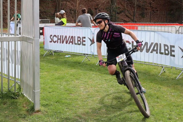 Ronja Steiling landete bei den Frauen auf Platz 1 im E-XD Full – Der neue Kuratoriumsvorsitzende der Kultur- und Sportstiftung der Kreissparkasse Euskirchen, Jochen Kupp, durfte erstmals den Startschuss geben