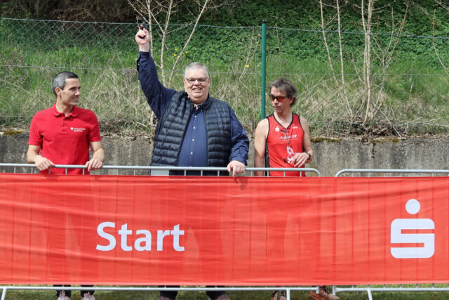Eine besondere Premiere erlebte an diesem Tag Jochen Kupp, der neue Kuratoriumsvorsitzende der Kultur- und Sportstiftung der Kreissparkasse Euskirchen. Er durfte mit einer kleinen, aber lauten Pistole den Startschuss für die beiden Hauptrennen geben. „Die KSK unterstützt diese überregional wichtige Veranstaltung schon seit vielen Jahren, um damit die vielen Ehrenamtler im Team rund um Urban Scheld zu würdigen, die sich für dieses Sportereignis stark machen“, so Kupp.
