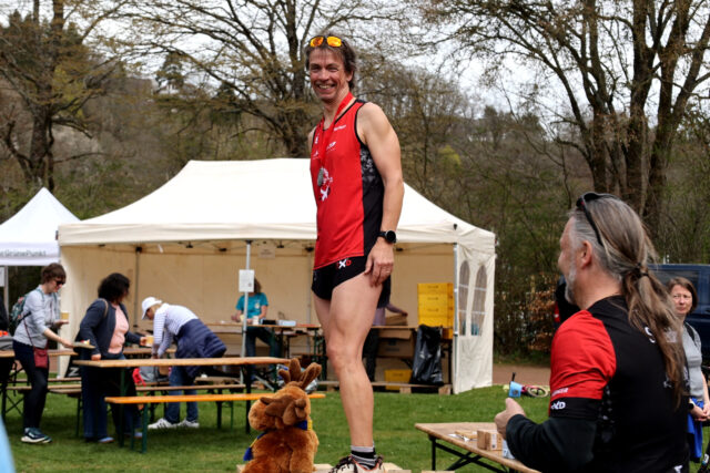 „Seit mindestens 15 Jahren genießen wir die Top-Betreuung der Kreissparkasse Euskirchen neben vielen anderen wichtigen Sponsoren“, berichtete Orga-Leiter Urban Scheld. Seither trage der Wettkampf auch den Namen „Eifeler Sparkassen Crossduathlon“. Die Kosten für so eine Veranstaltung seien insgesamt relativ hoch. Man benötige entsprechendes Equipment und es fielen Genehmigungsgebühren an. „Wenn man das alles über die Startgelder finanzieren müsste, müssten die Teilnehmenden 150 bis 200 Euro bezahlen“, berichtete Scheld. Insofern sei man sehr dankbar, sich auf seine Sponsoren verlassen zu können.